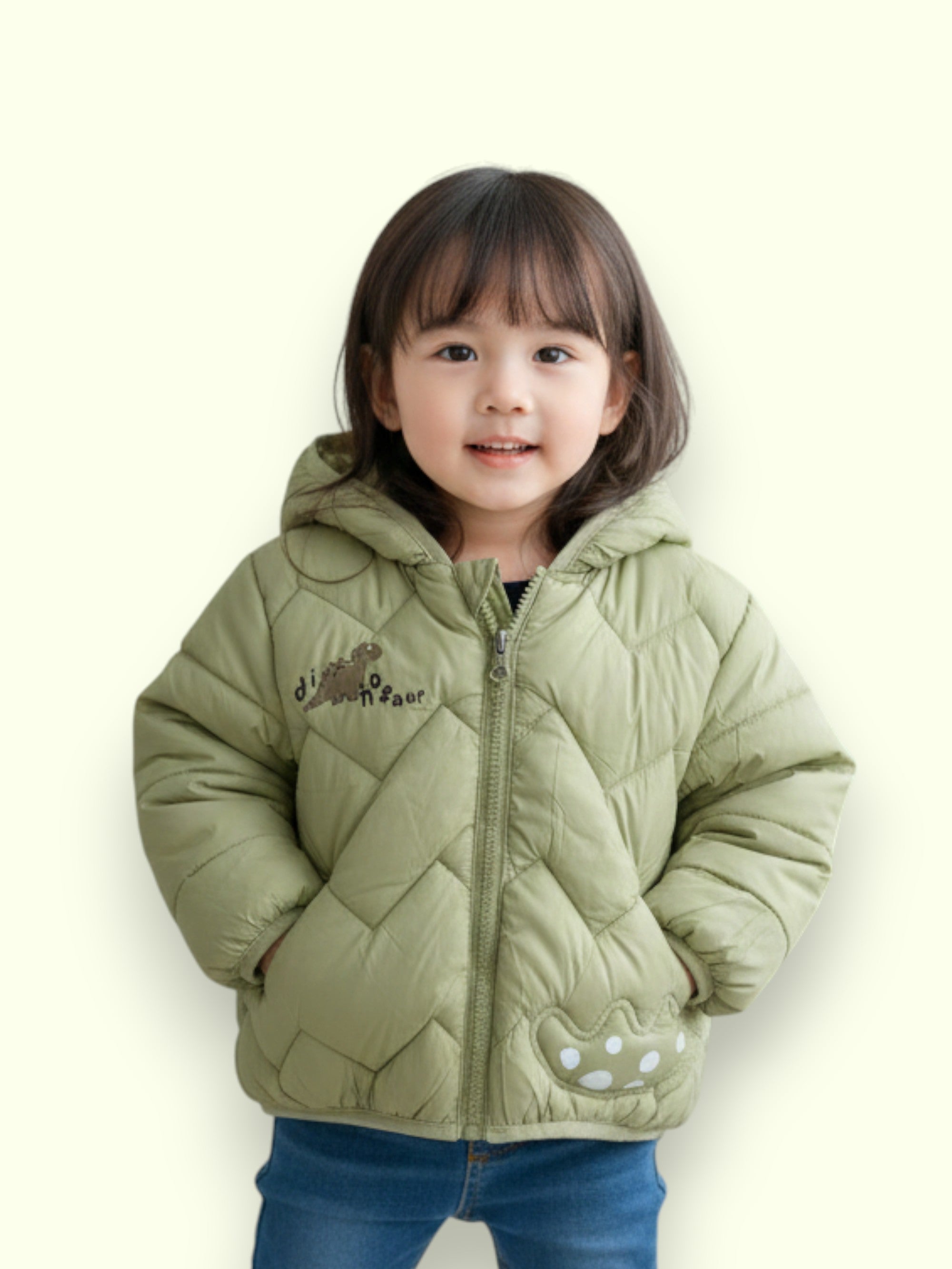 Boys/Girls Winter Wear Dinosaur Hooded Puffer Jacket – Ultra Soft & Warm Light Green Color