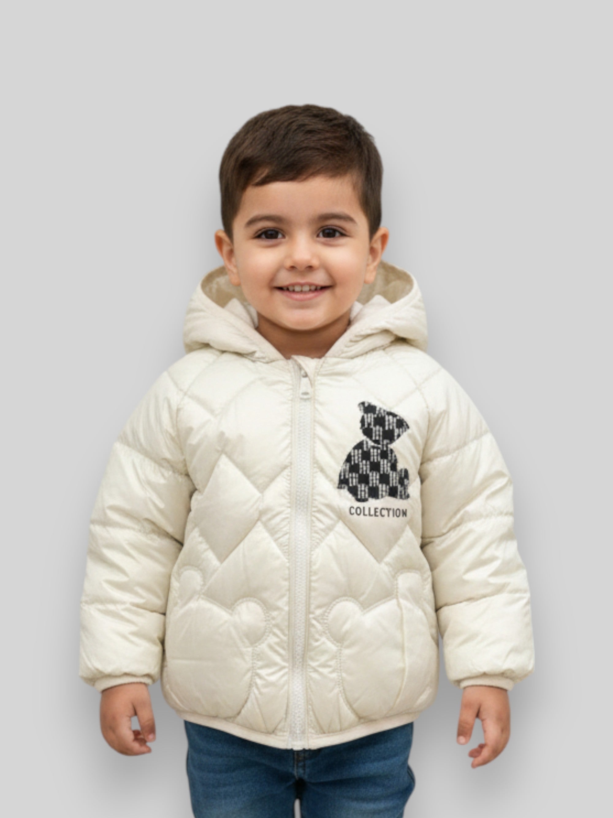 Boys/Girls Winter Wear Bear Hooded Puffer Jacket – Ultra Soft & Warm Silver Color