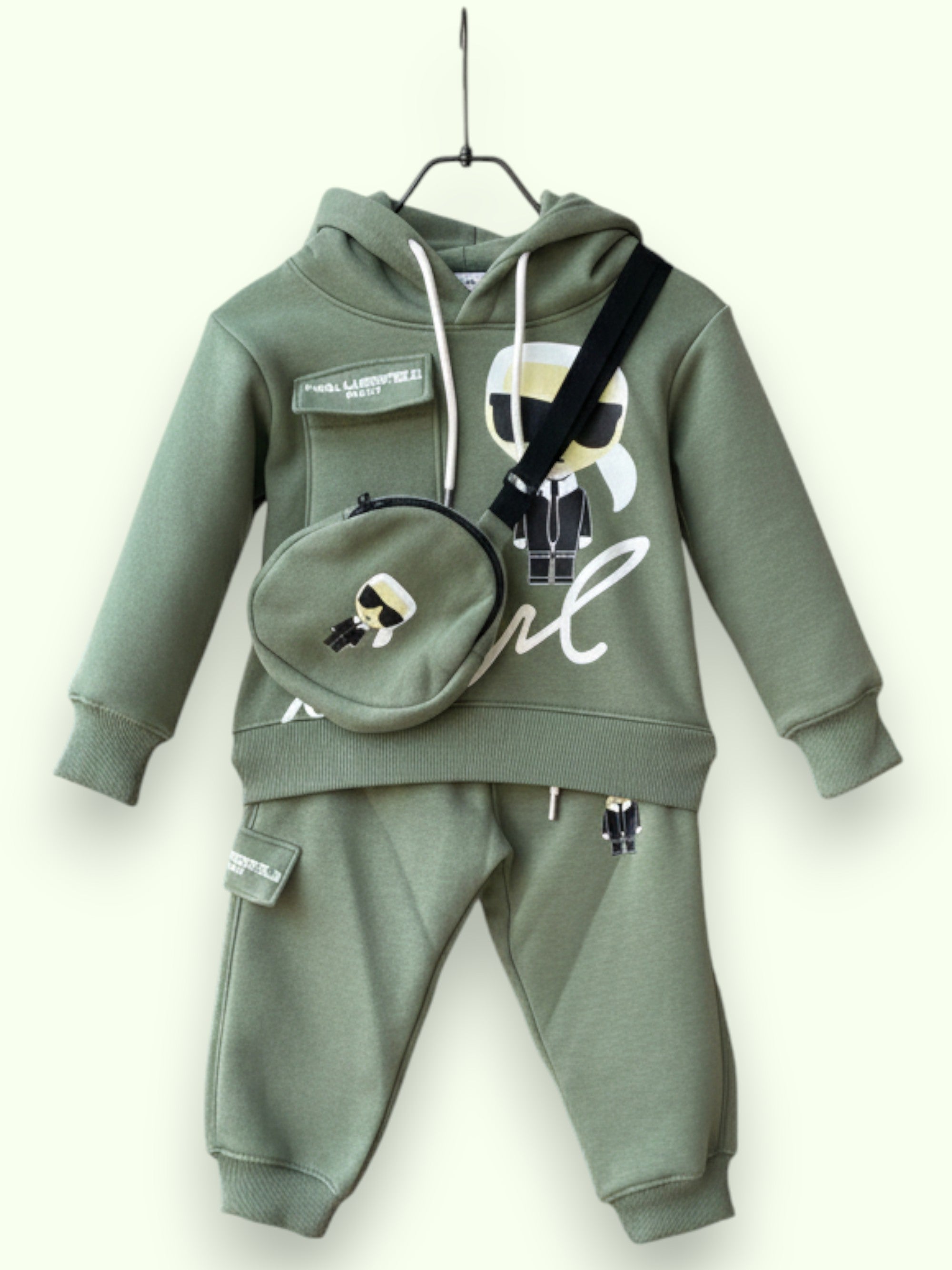 Boys Premium Olive Green Fleece Winter Tracksuit (Hoodie, Jogger Set & 1 Bag)